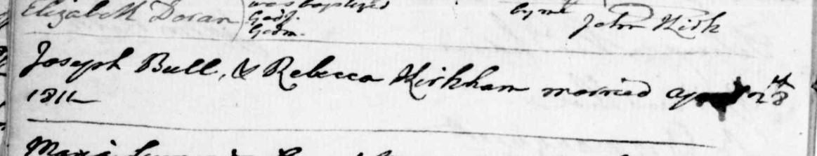 Ralph Bull was married to Mary Beard on Friday, 23 April 1660 at Tissington, Derbyshire, in the IGI for Tissington and Dalbury, the dates and names are OK, but Tissington is some distance from Dalbury!.1