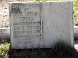 Jane (Nellie) Tipper, daughter of Loton Tipper and Elizabeth Ellen Calbut Harness, died on Saturday, 14 May 1960, in South Africa. Jane (Nellie) Tipper was buried in North End Cemetery, Port Elizabeth, Eastern Cape Province, South Africa,