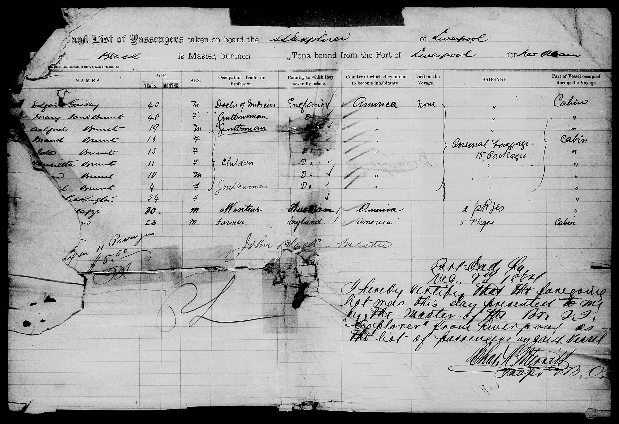 - [S3010] Immigration & Emigration Records), Passenger Lists of Vessels Arriving at New Orleans, Louisiana, 1802 - 1902, Downloaded from Family Search. Hereinafter cited as Immigration & Emigration Records.